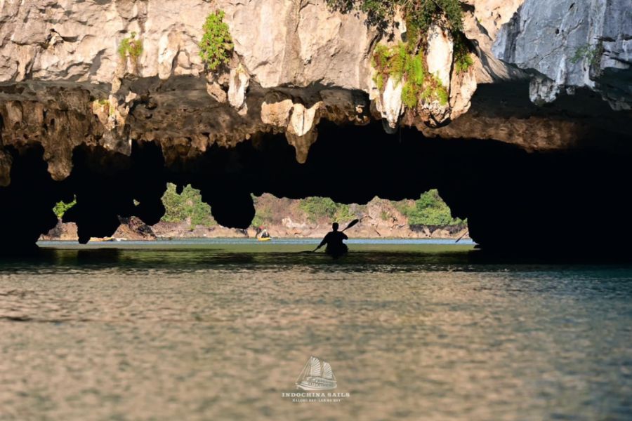 Questa grotta calcarea si trova dove si incontrano le baie di Ha Long, Lan Ha e Bai Tu Long. Il pavimento è sommerso dall’acqua mentre il soffitto è a 1-2 metri sopra la superficie, accessibile solo in piccole imbarcazioni o kayak. All’interno si ammirano stalattiti brillanti e si ascoltano i suoni delicati dell’acqua che gocciola e dei pipistrelli. Il contrasto di luci e ombre crea un’atmosfera incantevole e rilassante.