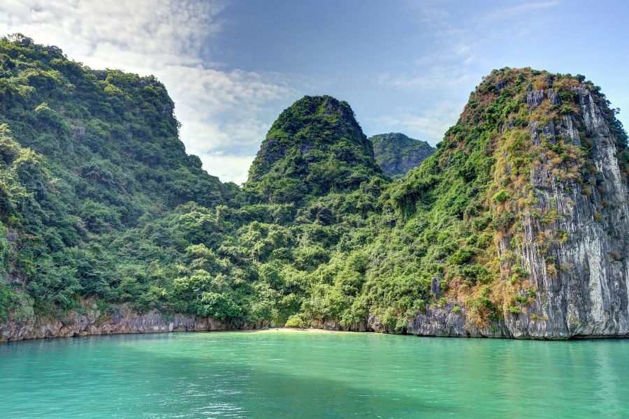 Questa spiaggia incontaminata si trova su un’isola nella Baia di Lan Ha, famosa per tre piccole colline calcaree che sembrano tre grandi pesche. I visitatori possono godere di spiagge tranquille, nuotare in acque limpide e fare kayak tra le formazioni rocciose.