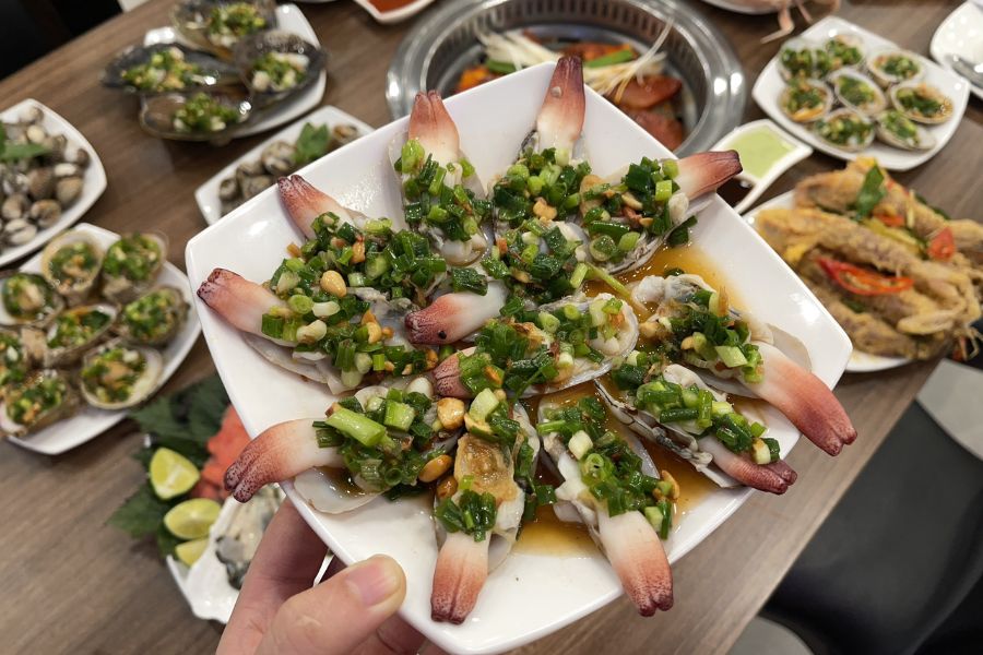 Le sò huyết di Cat Ba provengono dalle aree di mangrovia, un ambiente naturale ricco di nutrienti che conferisce a questi molluschi un sapore intenso e una consistenza carnosa. Vengono solitamente preparate al vapore, grigliate o saltate con aglio e citronella, mantenendo il loro gusto deciso e leggermente dolce. Servite calde, spesso accompagnate da sale, pepe e lime, rappresentano una specialità molto apprezzata della cucina locale, ideale per gli amanti dei frutti di mare dal carattere forte e autentico.