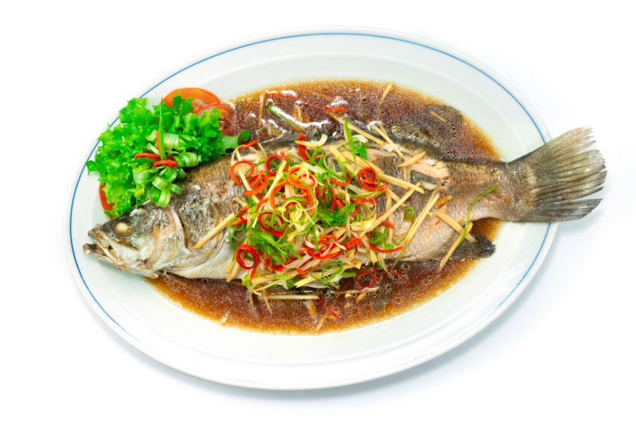 La ricciola è un pesce pregiato, apprezzato per la sua carne compatta e delicata. A Cat Ba viene solitamente cotta al vapore, alla griglia o utilizzata in zuppe leggere con erbe aromatiche locali. È un piatto equilibrato e raffinato, ideale per chi ama il pesce dal sapore pulito e naturale.