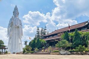 Il Monastero Zen di Truc Lam si trova su una collina che domina il lago Tuyen Lam e offre un rifugio tranquillo circondato da foreste di pini. Il complesso del tempio presenta architettura tradizionale, giardini curati e sentieri silenziosi per passeggiare. I visitatori spesso combinano la visita turistica con momenti di meditazione mentre godono dell’aria fresca di montagna. È uno dei luoghi spirituali più tranquilli di Da Lat.