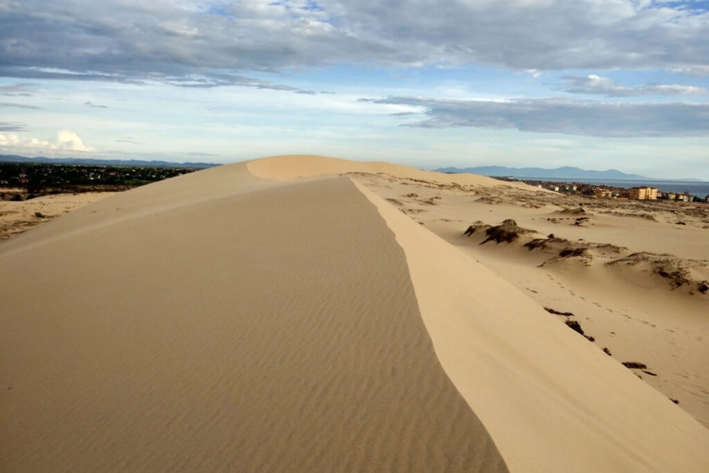 Le dune di Quang Phu offrono un paesaggio spettacolare di colline di sabbia bianca modellate dal vento. I visitatori possono praticare sandboarding o scattare foto suggestive all’alba e al tramonto. Uno scenario unico vicino alla città di Dong Hoi.